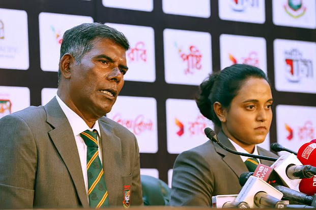 বিশ্বকাপে খেলতে যাওয়ার আগে সংবাদ সম্মেলনে কোচ সারওয়ার ইমরান ও অধিনায়ন নিগার সুলতানা