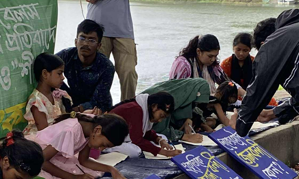 বরিশালে রঙিন প্রতিবাদ শিশুদের তুলিতে ।
