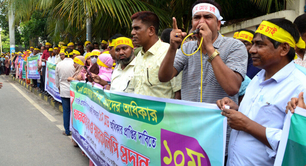 প্রাথমিক শিক্ষকদের লাগাতার অবস্থান কর্মসূচি ঘোষণা: দশম গ্রেডসহ তিন দফা দাবিতে কেন্দ্রীয় শহীদ মিনারে বিক্ষোভ