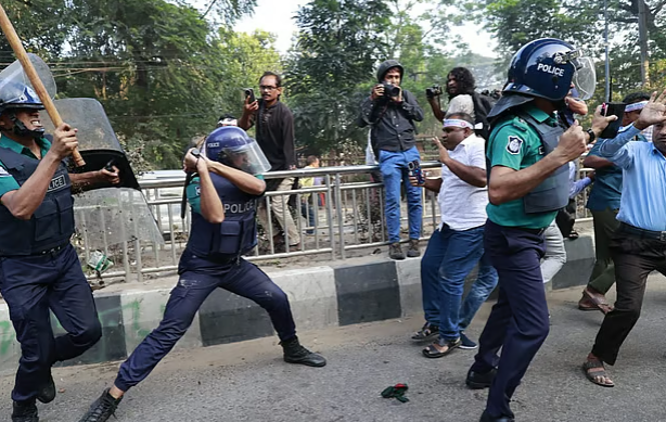 শাহবাগে লাঠি, কাঁদানে গ্যাস, সাউন্ড গ্রেনেড নিয়ে শিক্ষকদের ওপর চড়াও পুলিশ