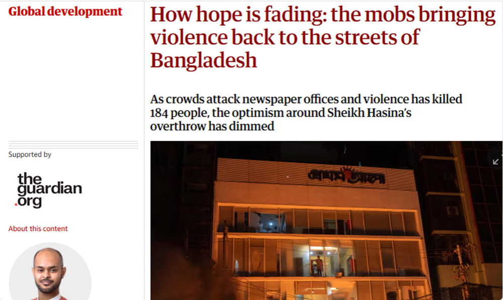 গত ১৮ ডিসেম্বর রাতে সহিংসতা ছড়িয়ে পড়লে ডেইলি স্টার-এর ৩৫ বছর বয়সী প্রতিবেদক জাইমা ইসলাম ও তার ২৮ জন সহকর্মী দ্রুত ভবনের ছাদে আশ্রয় নেন। তাদের আশা ছিল, সেখানে অপেক্ষা করলে পরিস্থিতি কিছুটা শান্ত হবে। তবে জাইমা ইসলামের ভাষ্য অনুযায়ী, ভেতরে আটকে পড়া সবাই বুঝতে পেরেছিলেন যে, উত্তেজিত জনতা শুধু কার্যালয় ভাঙচুর করেই থামবে না, […]
