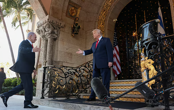 যুক্তরাষ্ট্রের ফ্লোরিডার পাম বিচে ট্রাম্পের মার-এ-লাগো রিসোর্টে এক বৈঠকে যোগ দিতে আসার পর ইসরায়েলি প্রধানমন্ত্রী বেনিয়ামিন নেতানিয়াহুকে স্বাগত জানান মার্কিন প্রেসিডেন্ট ডোনাল্ড ট্রাম্প। ২৯ ডিসেম্বর ২০২৫ ইরান ব্যালিস্টিক ক্ষেপণাস্ত্র বা পারমাণবিক কর্মসূচি আবার শুরুর চেষ্টা করলে দেশটিতে নতুন করে বড় ধরনের সামরিক হামলা চালানোর হুমকি দিয়েছেন মার্কিন প্রেসিডেন্ট ডোনাল্ড ট্রাম্প। একই সঙ্গে ফিলিস্তিনের স্বাধীনতাকামী সংগঠন […]