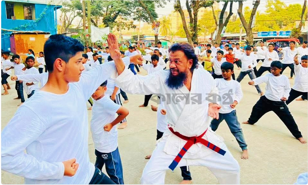 দাউদকান্দিতে শিক্ষার্থীদের কারাতে শেখাচ্ছেন ইলিয়াস কোবরা