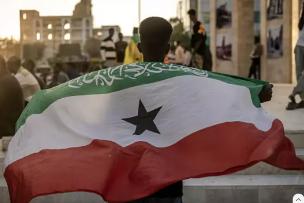 সোমালিল্যান্ডের পতাকা হাতে এক ব্যক্তিফাইল ছবি: এএফপি রাষ্ট্র হিসেবে সোমালিল্যান্ডকে