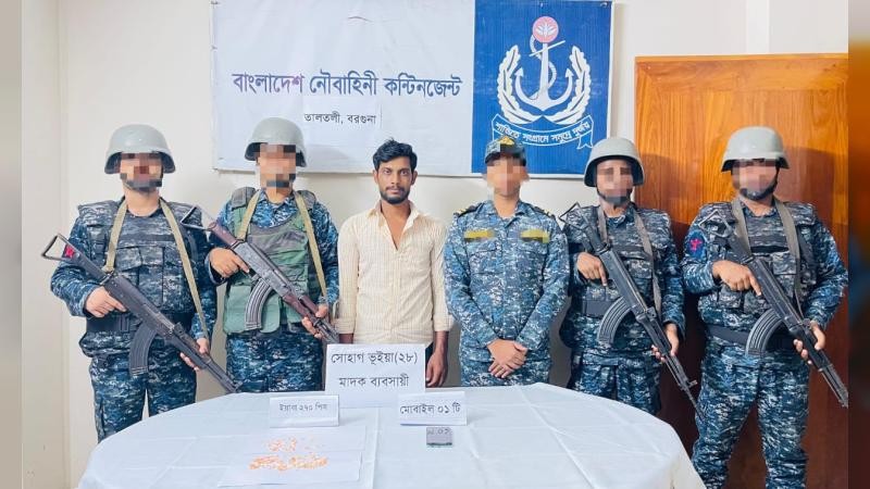 বরগুনায় মাদক কারবারি আটক নৌবাহিনীর অভিযানে ।